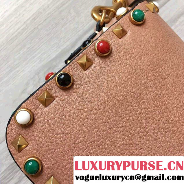 Valentino Multi-colored Cabochon Stones Rockstud Rolling Cross Body Shoulder Bag 2016Small Size:19*9*14cm
