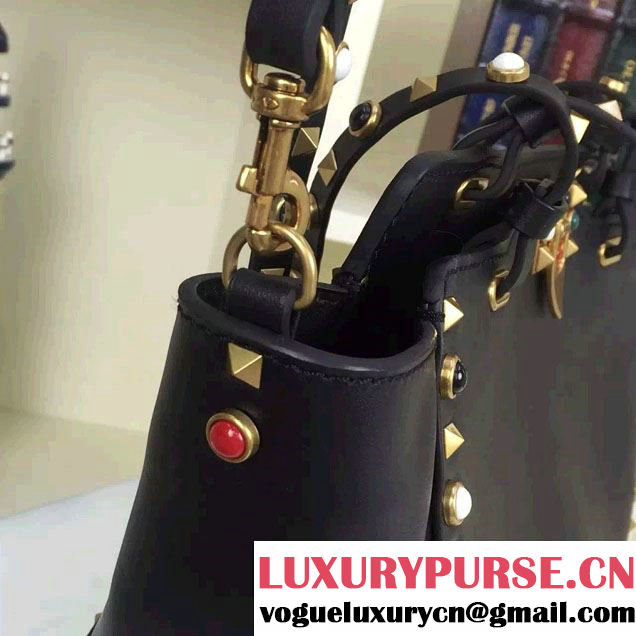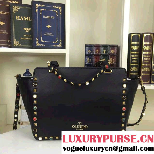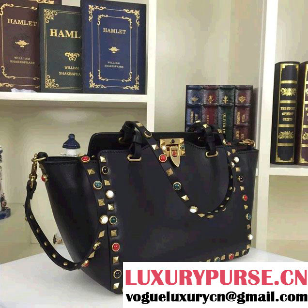 Valentino Multi-colored Cabochon Stones Rockstud Rolling Small Tote Bag 2016
