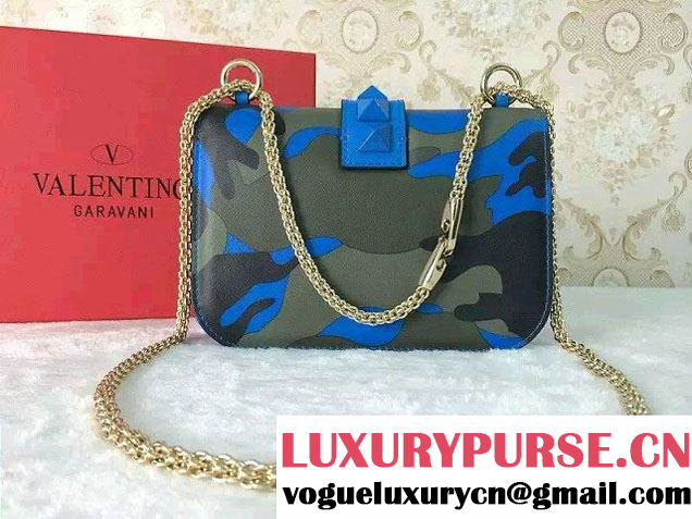 Valentino Rockstud Camouflage Print Flap Shoulder Small Bag Blue