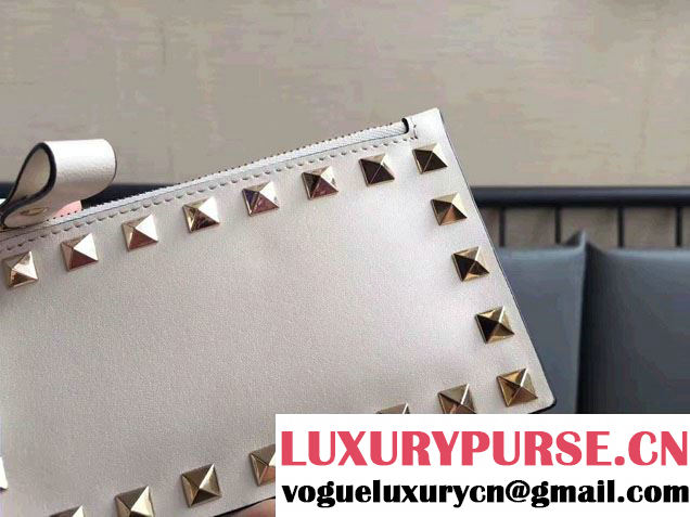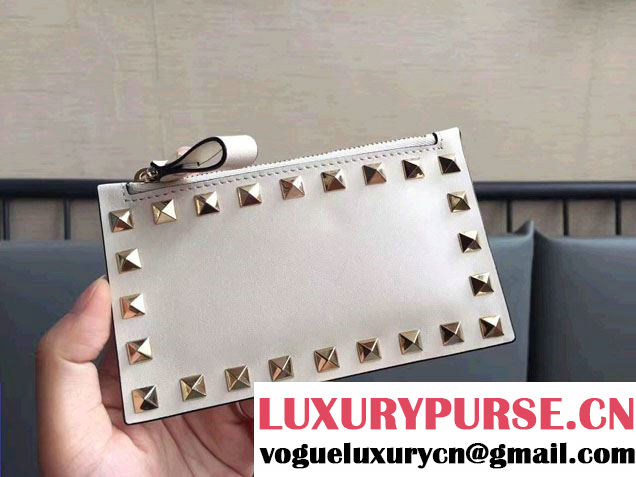 Valentino Garavani Rockstud Spike Card Holder Wallet 14cm Calfskin Leather Fall Winter 2017 Collection White