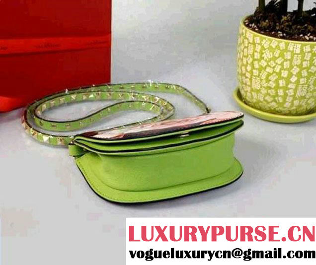 Valentino Rockstud Green Peony-Print Flap Shoulder Bag