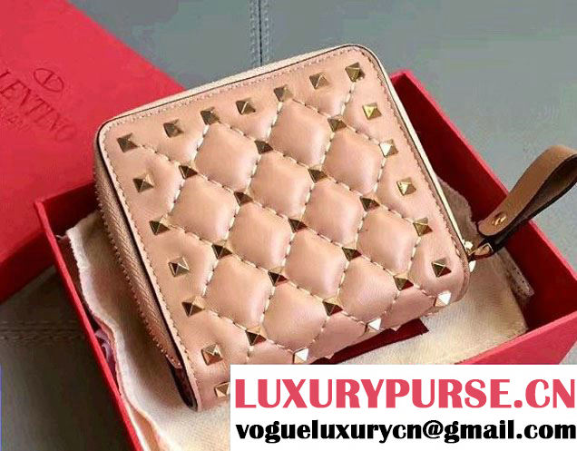 Valentino Garavani Rockstud Spike Wallet 11cm Calfskin Leather Fall Winter 2017 Collection Light Pink