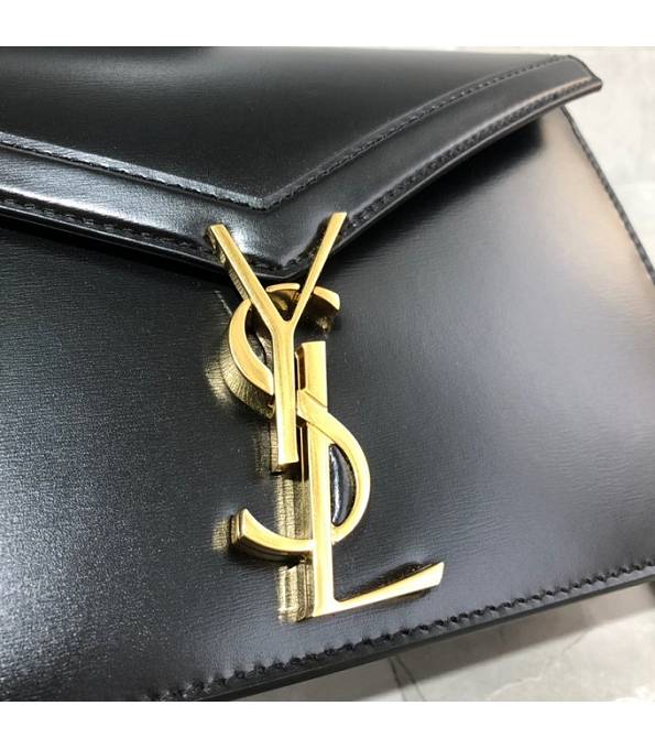 YSL Cassandra Black Original Plain Veins Calfskin Leather Golden Chain Small Clasp Bag