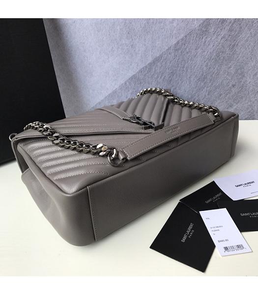 • YSL College Khaki Original Chevron Lambskin Silver Metal Large Top Handle Bag