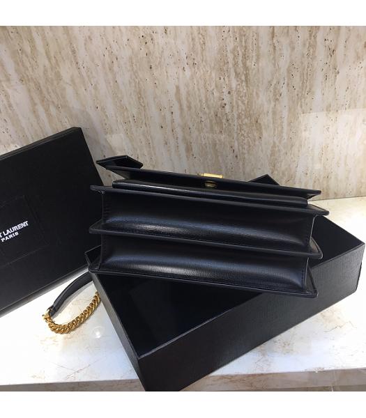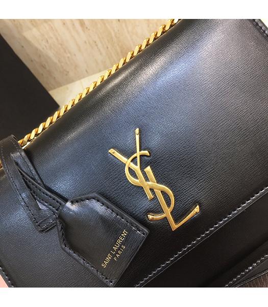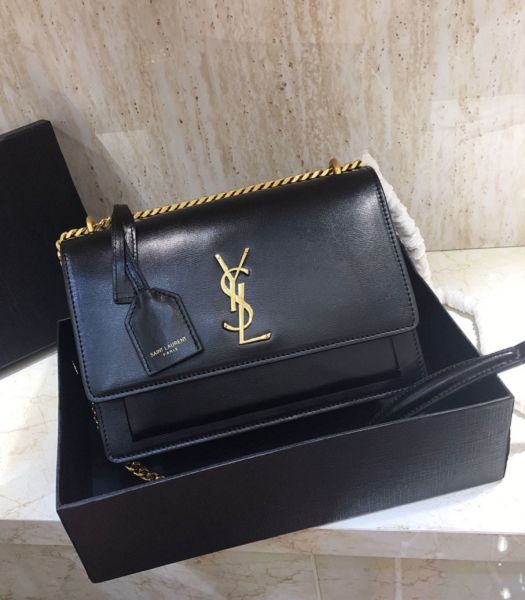 YSL Sunset Black Original Real Leather Golden Metal Medium Flap Shoulder Bag